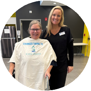 Your team here at Crest Pointe is amazing. The level of care and support is so appreciative. I work as a zookeeper at Jenkinson’s Aquarium and have heard great things about the facility over the years. My son toured the facility before I was admitted and he knew I’d be in good hands. On top of that, the gym is so nice as well as the rehab team. They have helped me so much recovering from my fall and fracturing my leg.